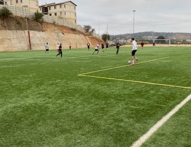 Espacio ideal para partidos y entrenamientos de fútbol en dos canchas de pasto sintético. Se cuenta con servicio de escuelas de fútbol permanentes. Arriendos para la realización de campeonatos de diferentes instituciones.